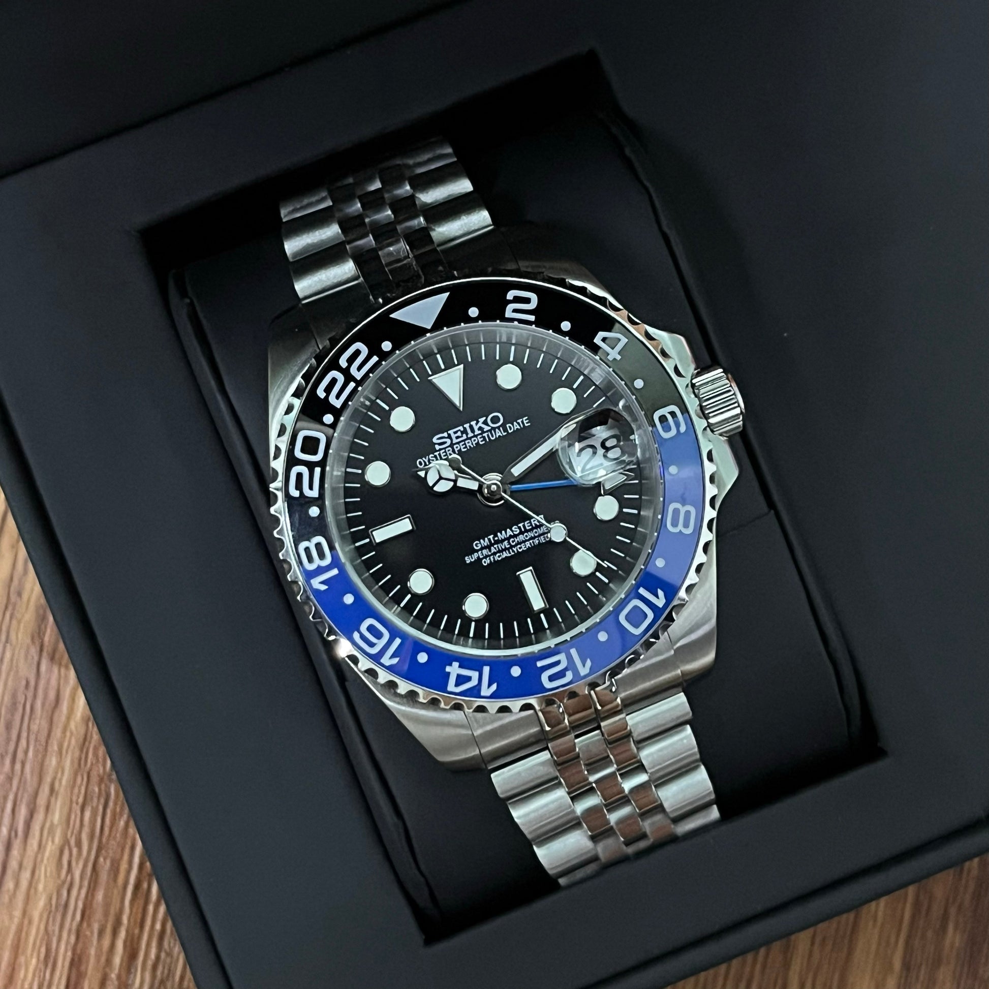 Inspired by the iconic GMT design, and featuring the prestigious Seiko NH34 automatic movement, we present the Seiko Mod GMT. A 40 mm high-end quality watch combining the perfect alliance between excellence and accessibility.