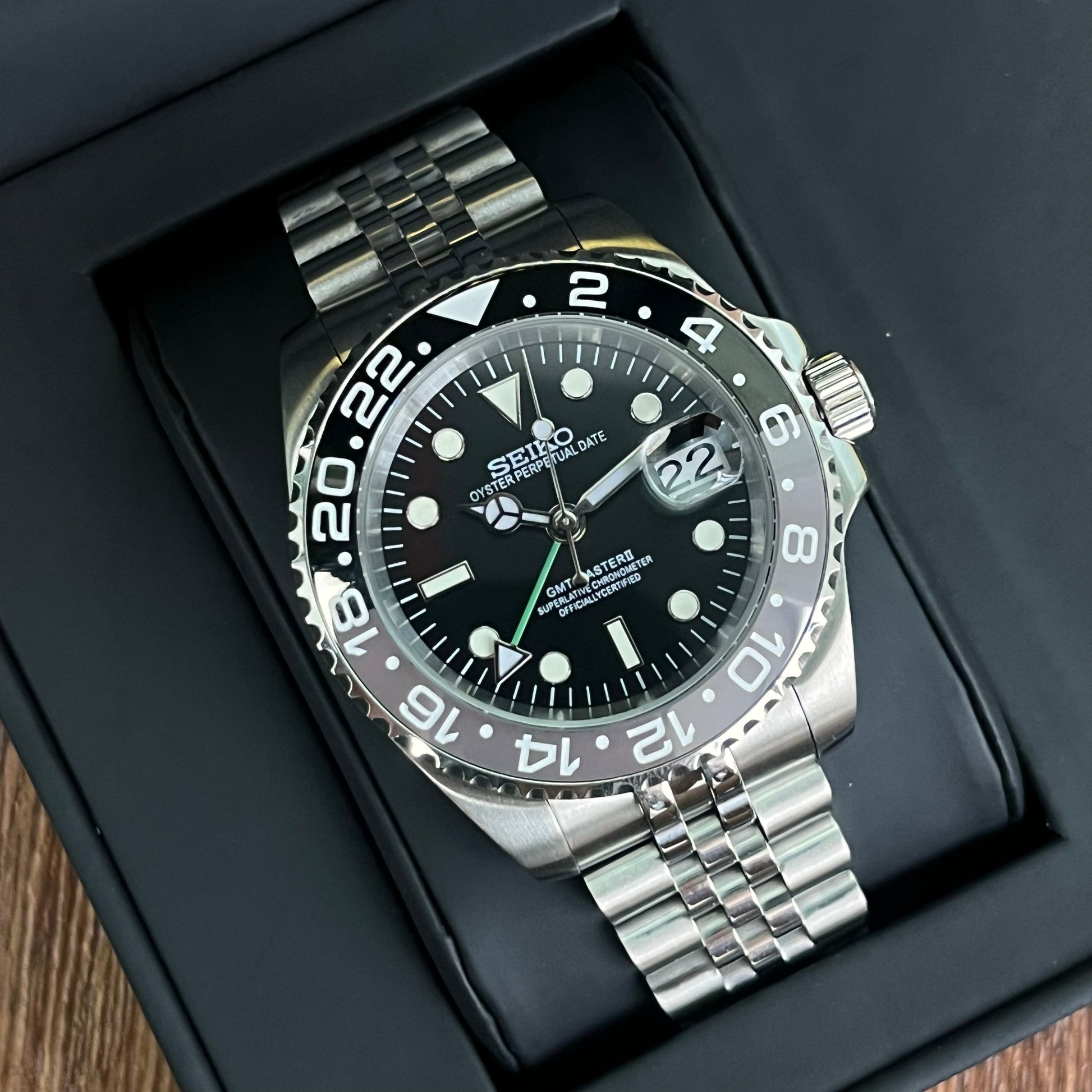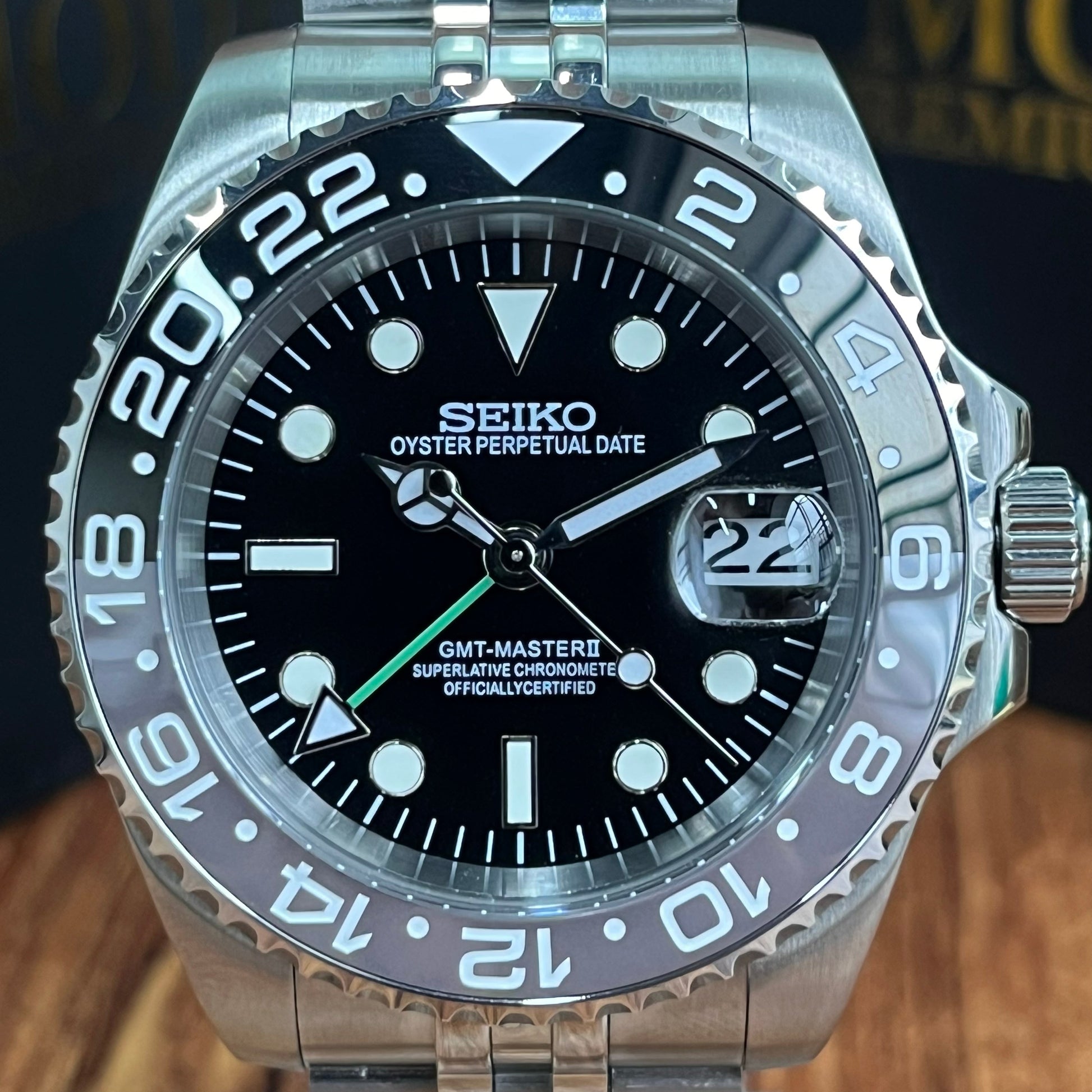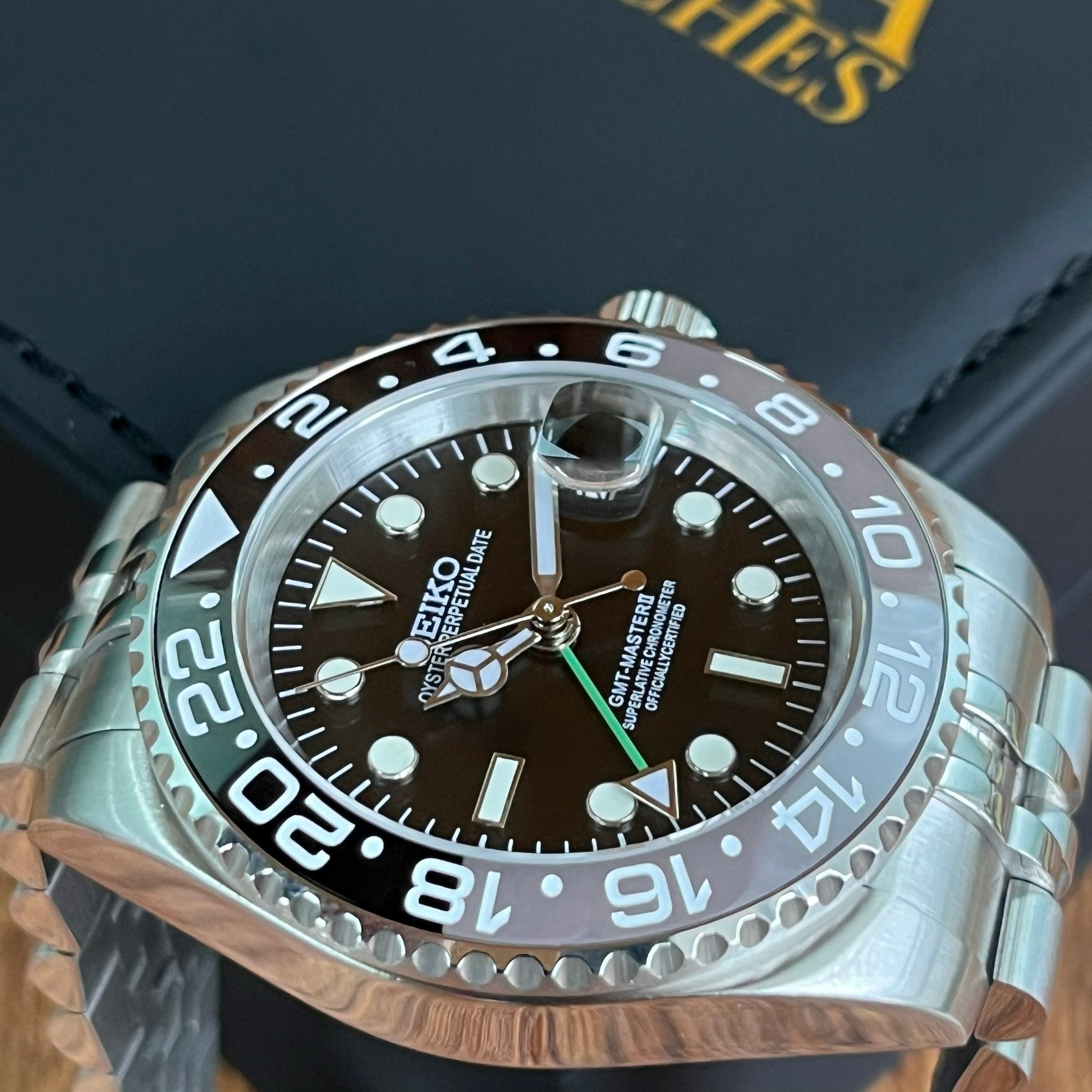 Inspired by the iconic GMT design, and featuring the prestigious Seiko NH34 automatic movement, we present the Seiko Mod GMT. A 40 mm high-end quality watch combining the perfect alliance between excellence and accessibility.