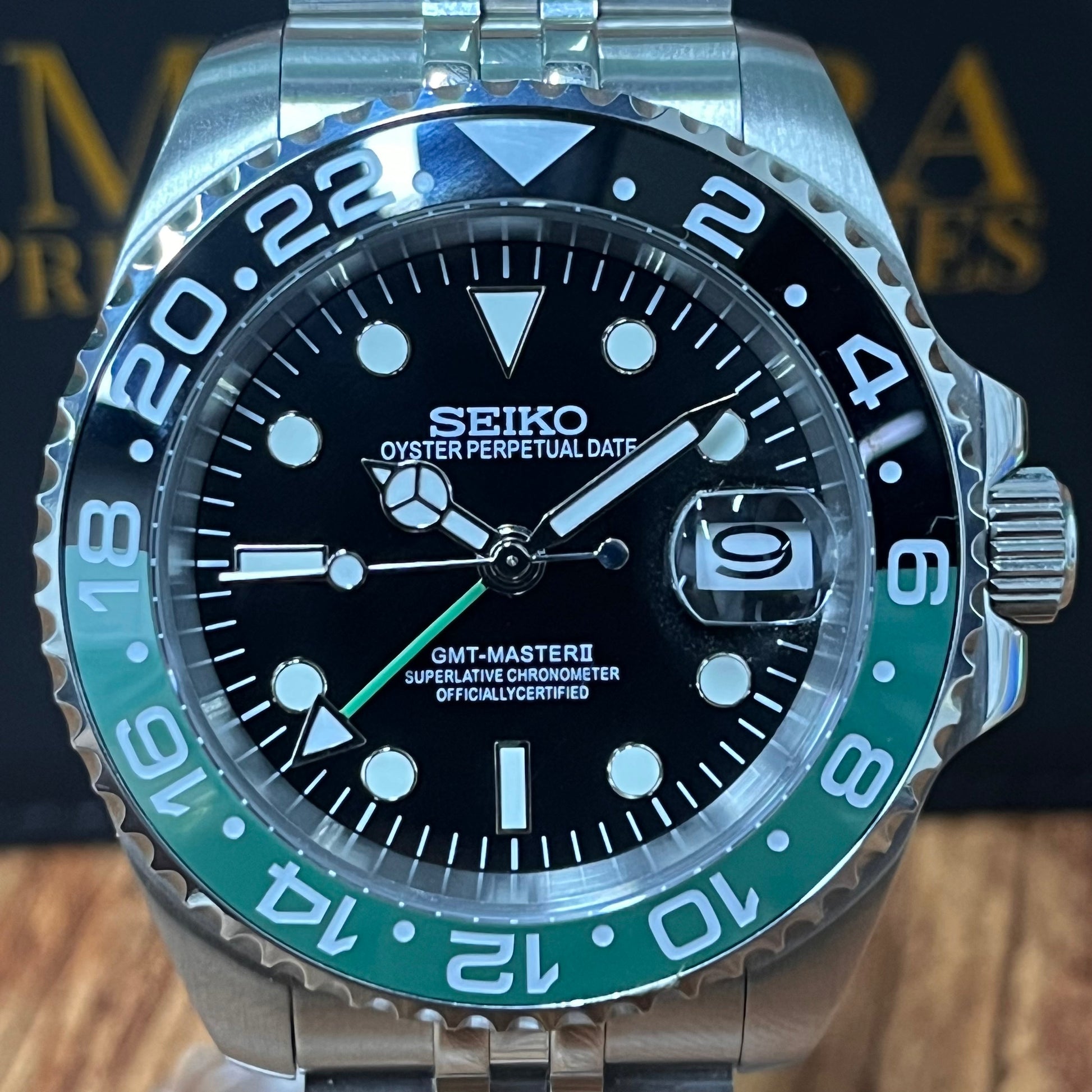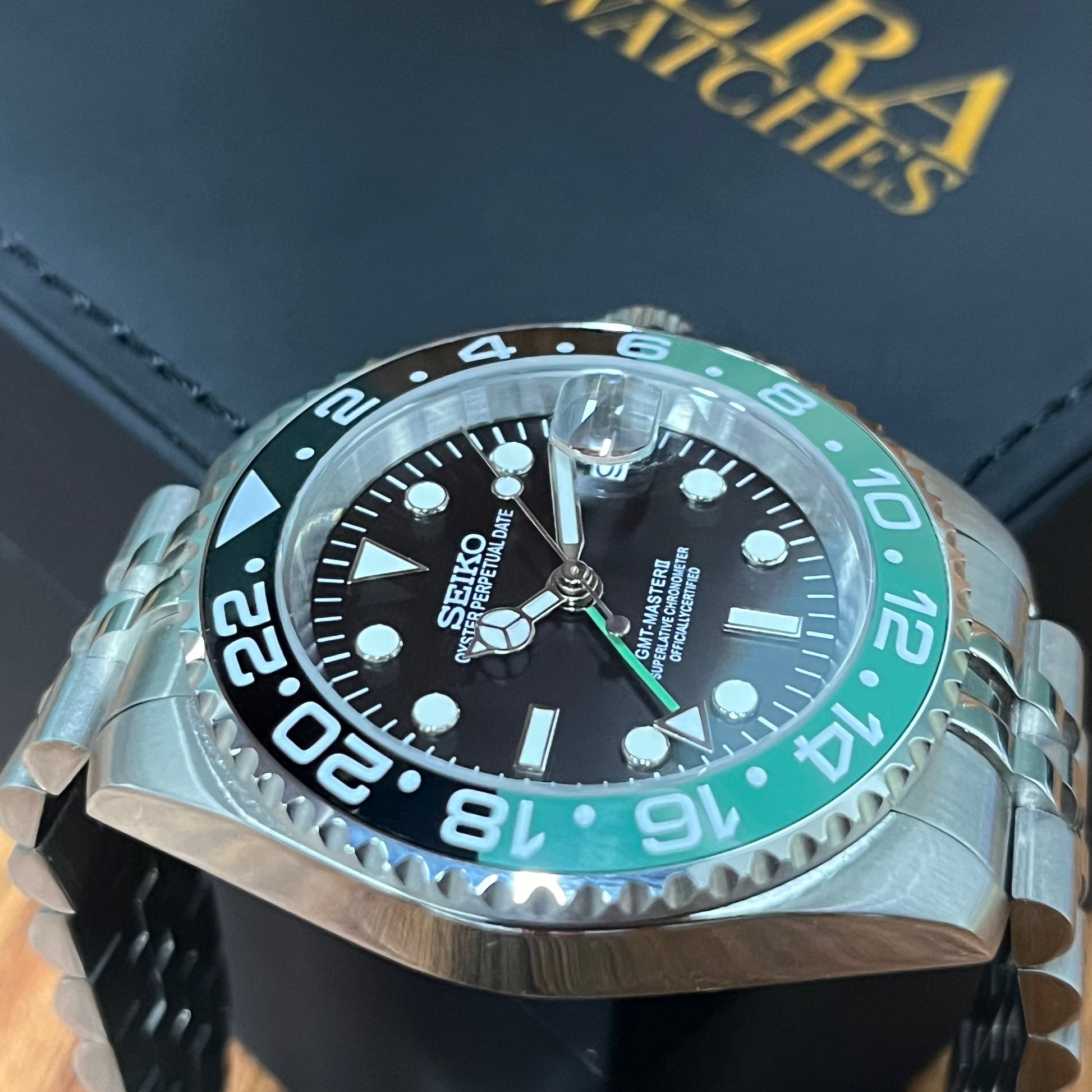 Inspired by the iconic GMT design, and featuring the prestigious Seiko NH34 automatic movement, we present the Seiko Mod GMT. A 40 mm high-end quality watch combining the perfect alliance between excellence and accessibility.