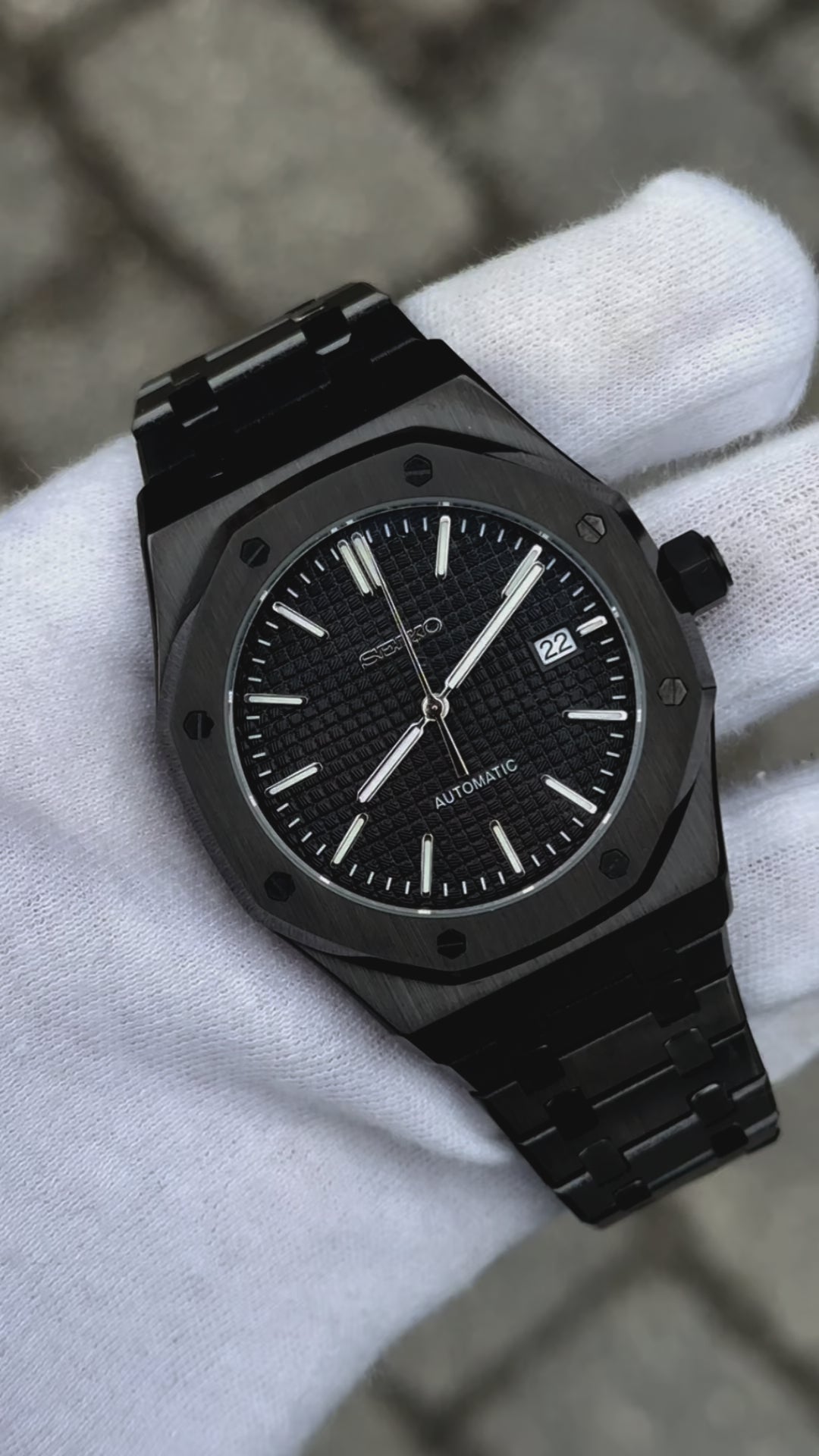 Inspired by the iconic Royal Oak design, and featuring the prestigious Seiko NH35 automatic movement, we present the Seiko Mod Royal Oak. A 41 mm high-end quality watch combining the perfect alliance between excellence and accessibility.