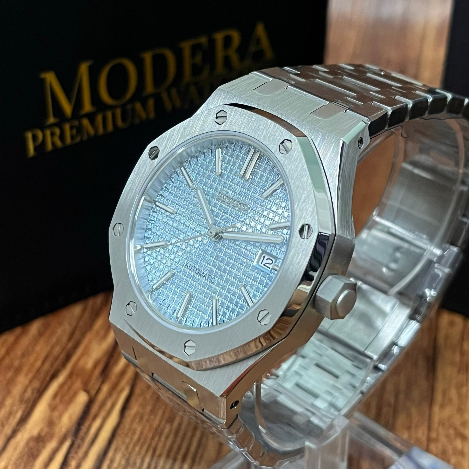 Inspired by the iconic Royal Oak design, and featuring the prestigious Seiko NH35 automatic movement, we present the Seiko Mod Royal Oak. A 41 mm high-end quality watch combining the perfect alliance between excellence and accessibility.