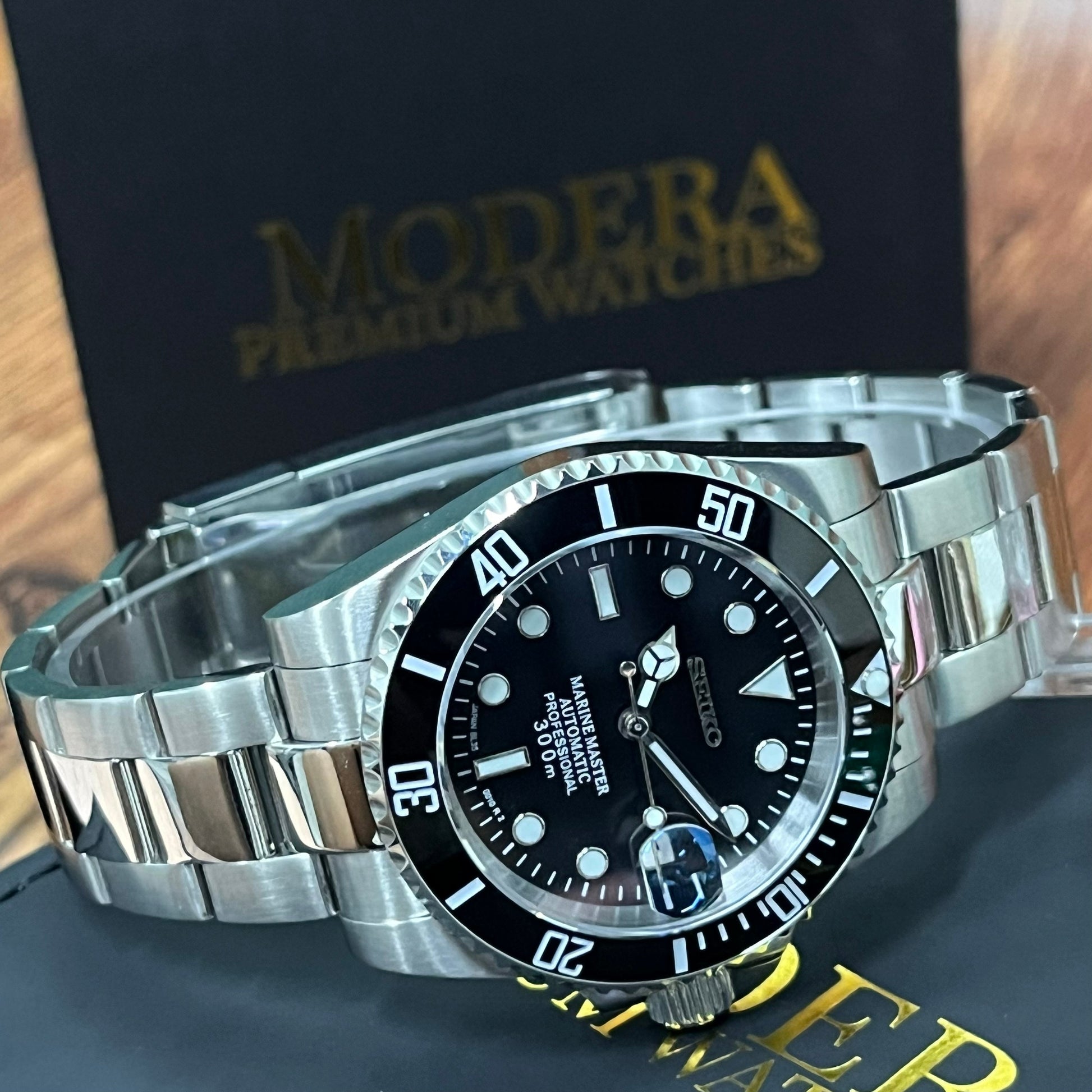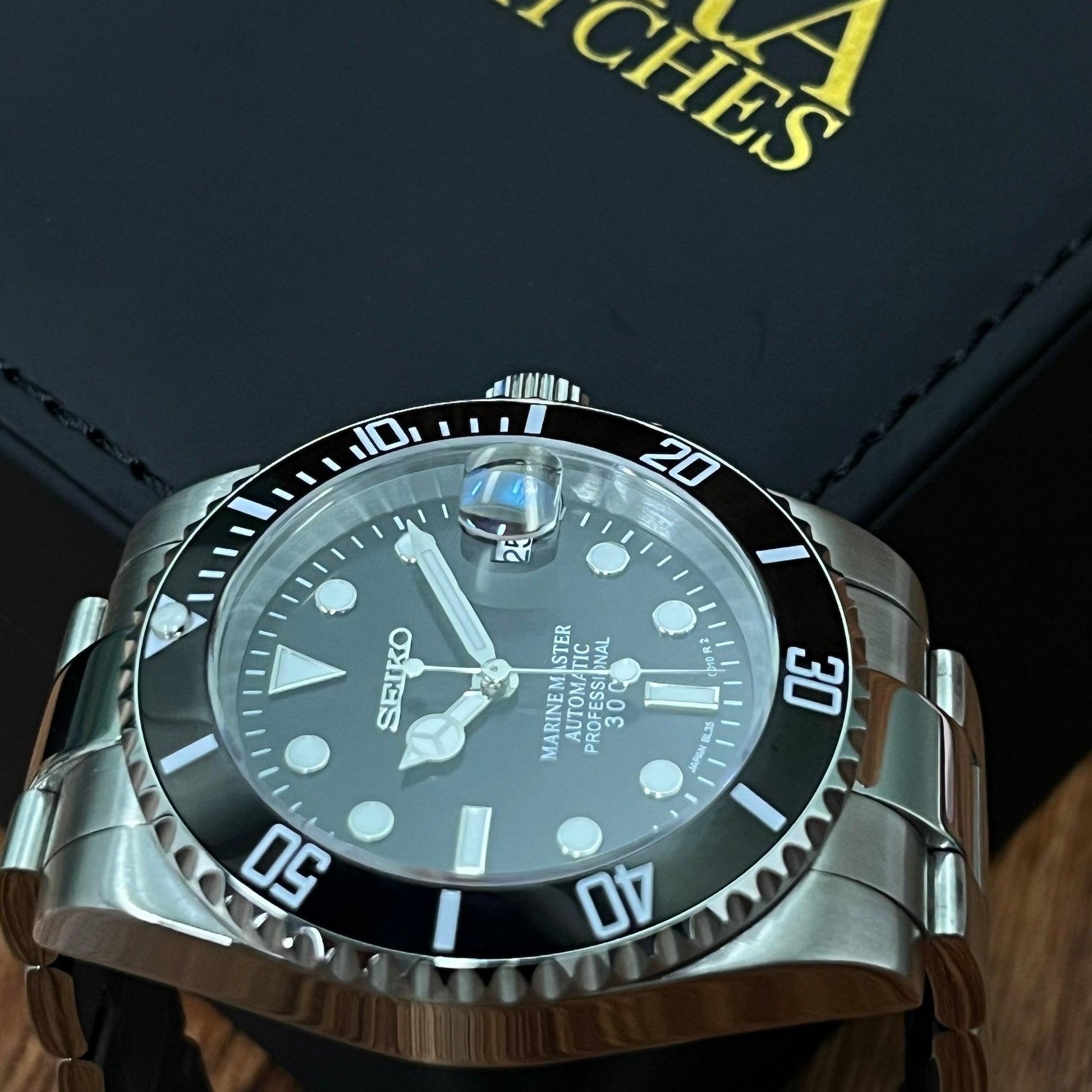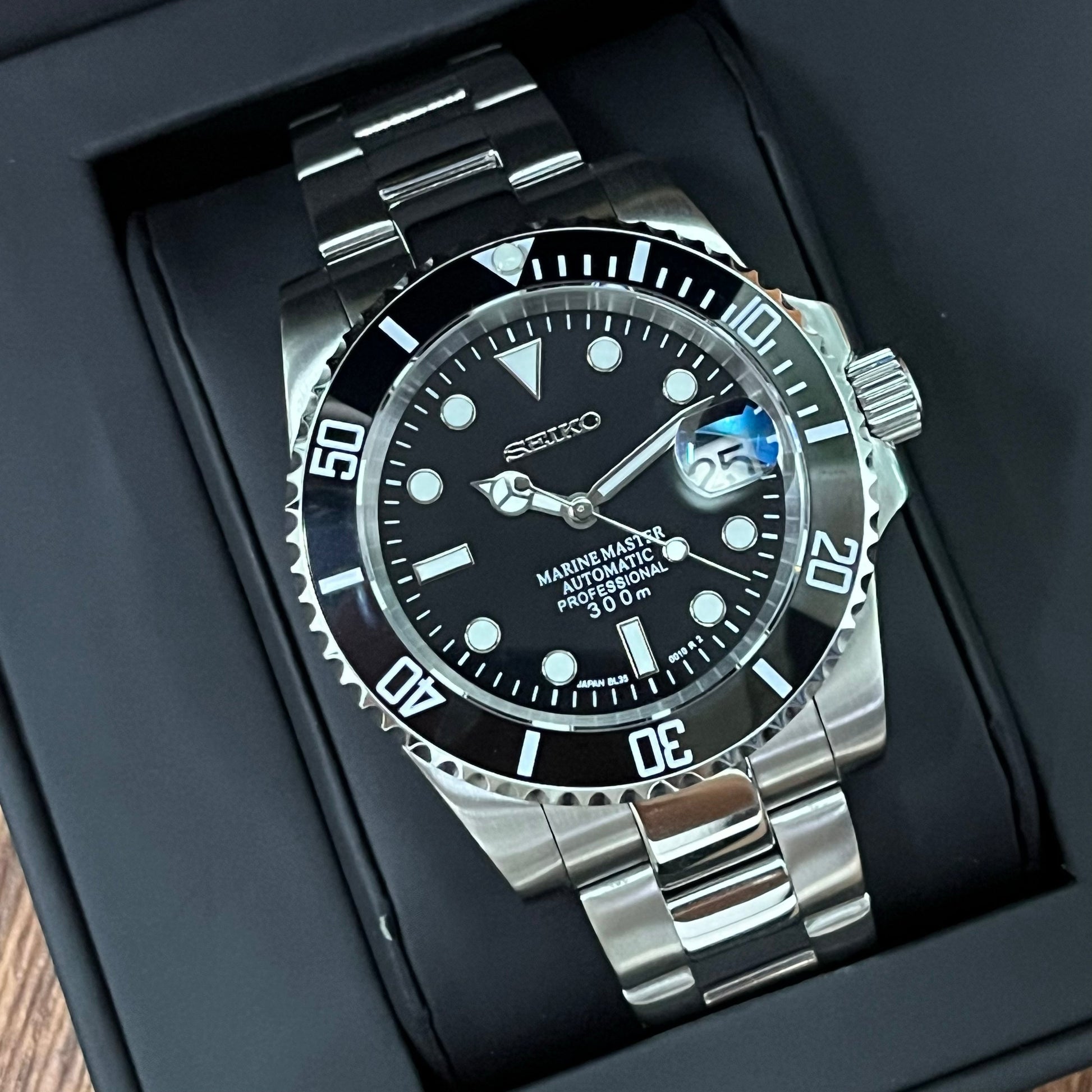 Inspired by the iconic Submariner design, and featuring the prestigious Seiko NH35 automatic movement, we present the Seiko Mod Submariner. A 40 mm high-end quality watch combining the perfect alliance between excellence and accessibility.