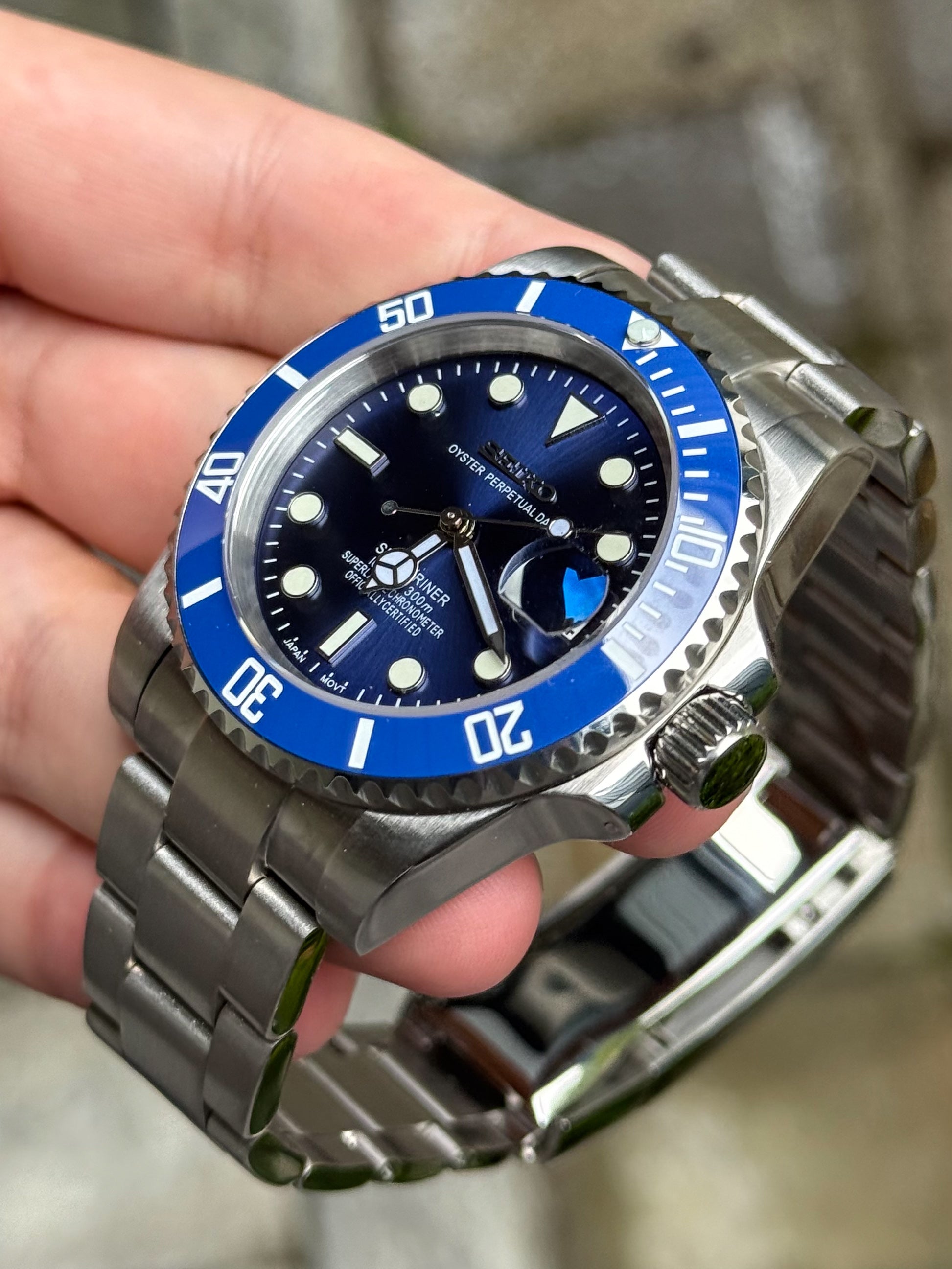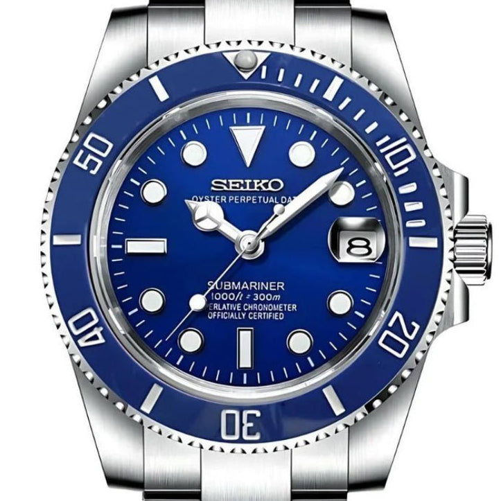 Inspired by the iconic Submariner design, and featuring the prestigious Seiko NH35 automatic movement, we present the Seiko Mod Submariner. A 40 mm high-end quality watch combining the perfect alliance between excellence and accessibility.