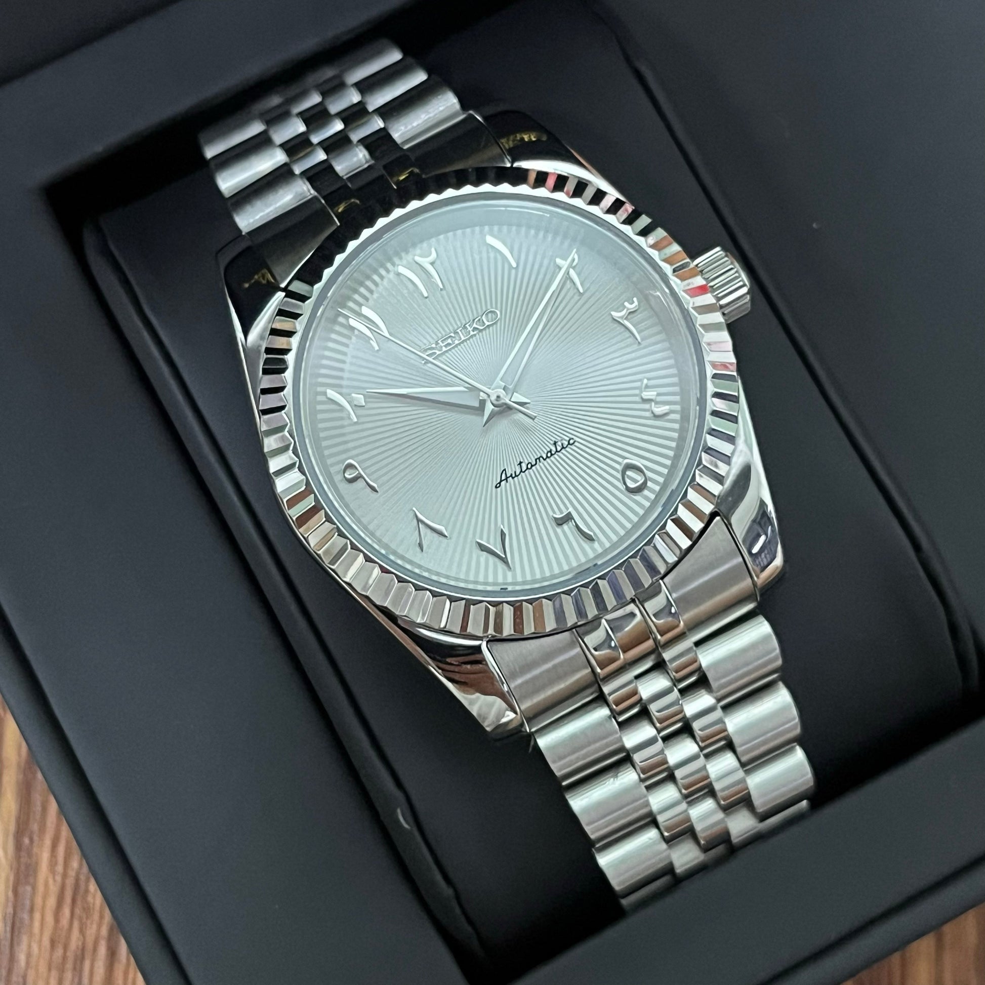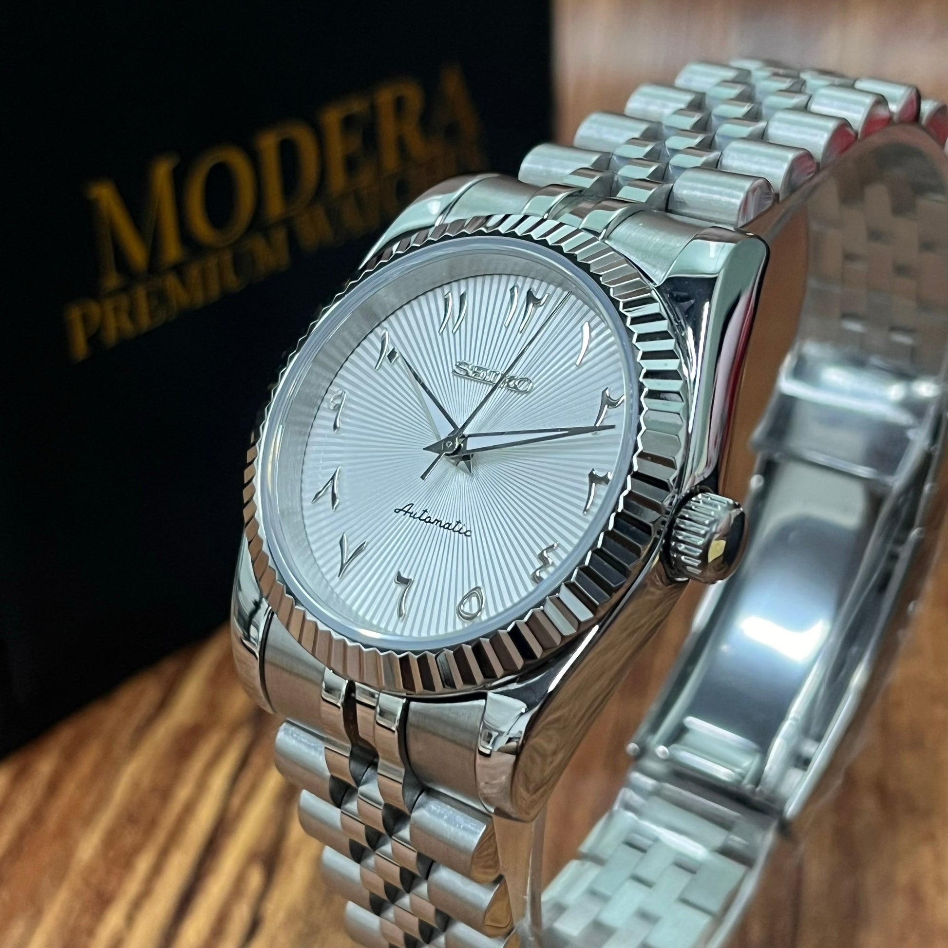 Inspired by the iconic Datejust design, and featuring the prestigious Seiko NH35 automatic movement, we present the Seiko Mod Datejust. A 36 / 39 mm high-end quality watch combining the perfect alliance between excellence and accessibility.