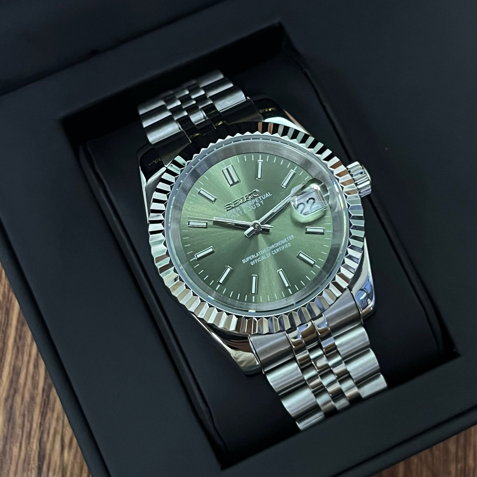 Inspired by the iconic Datejust design, and featuring the prestigious Seiko NH35 automatic movement, we present the Seiko Mod Datejust. A 36 / 39 mm high-end quality watch combining the perfect alliance between excellence and accessibility.