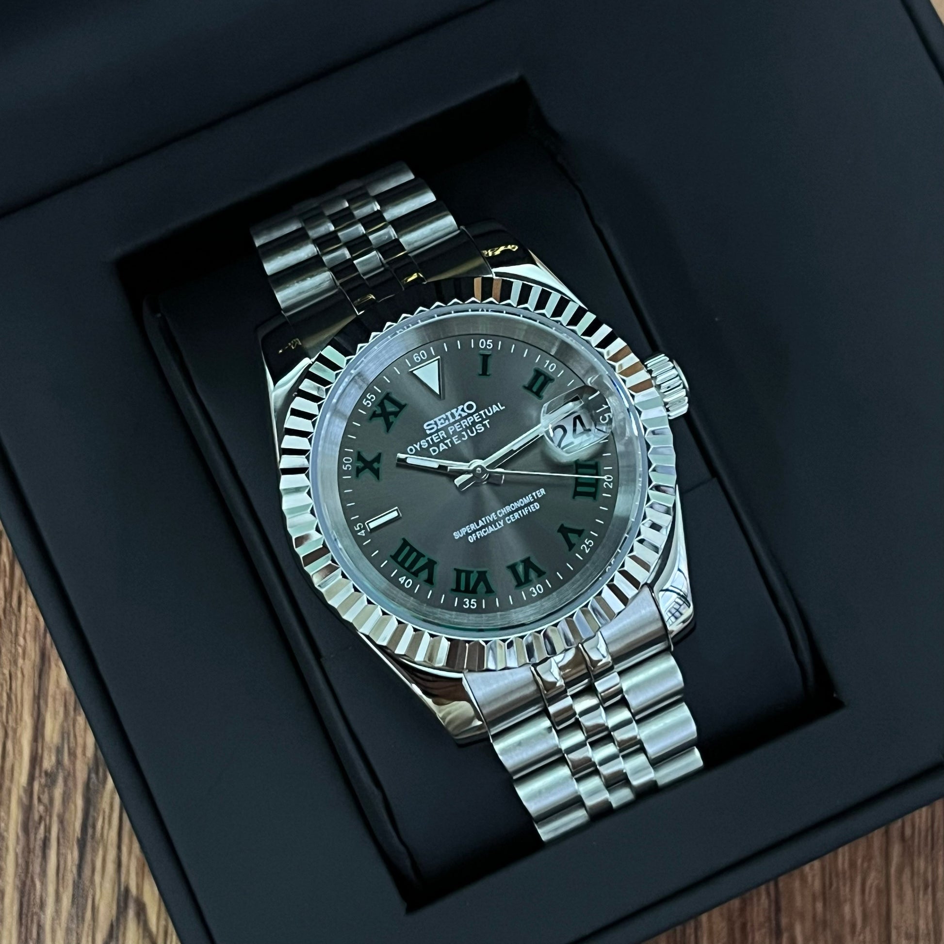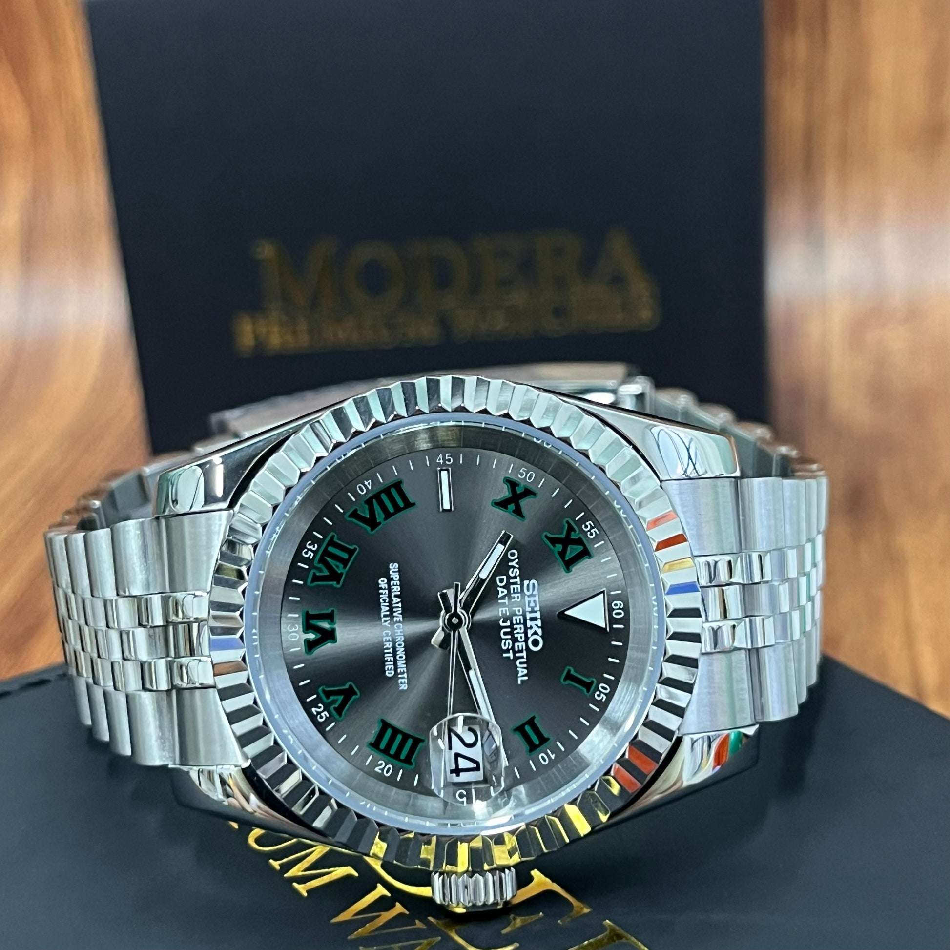 Inspired by the iconic Datejust design, and featuring the prestigious Seiko NH35 automatic movement, we present the Seiko Mod Datejust. A 36 / 39 mm high-end quality watch combining the perfect alliance between excellence and accessibility.