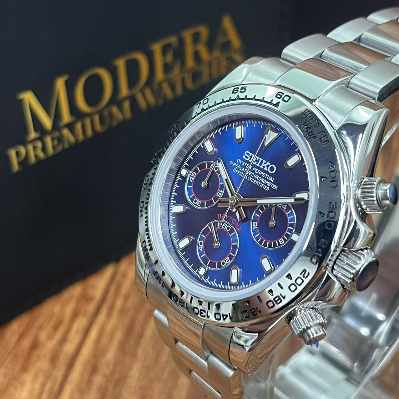 Inspired by the iconic Daytona design, and featuring the prestigious Seiko VK63 hybrid movement, we present the Seiko Mod Daytona. A 40 mm high-end quality watch combining the perfect alliance between excellence and accessibility.