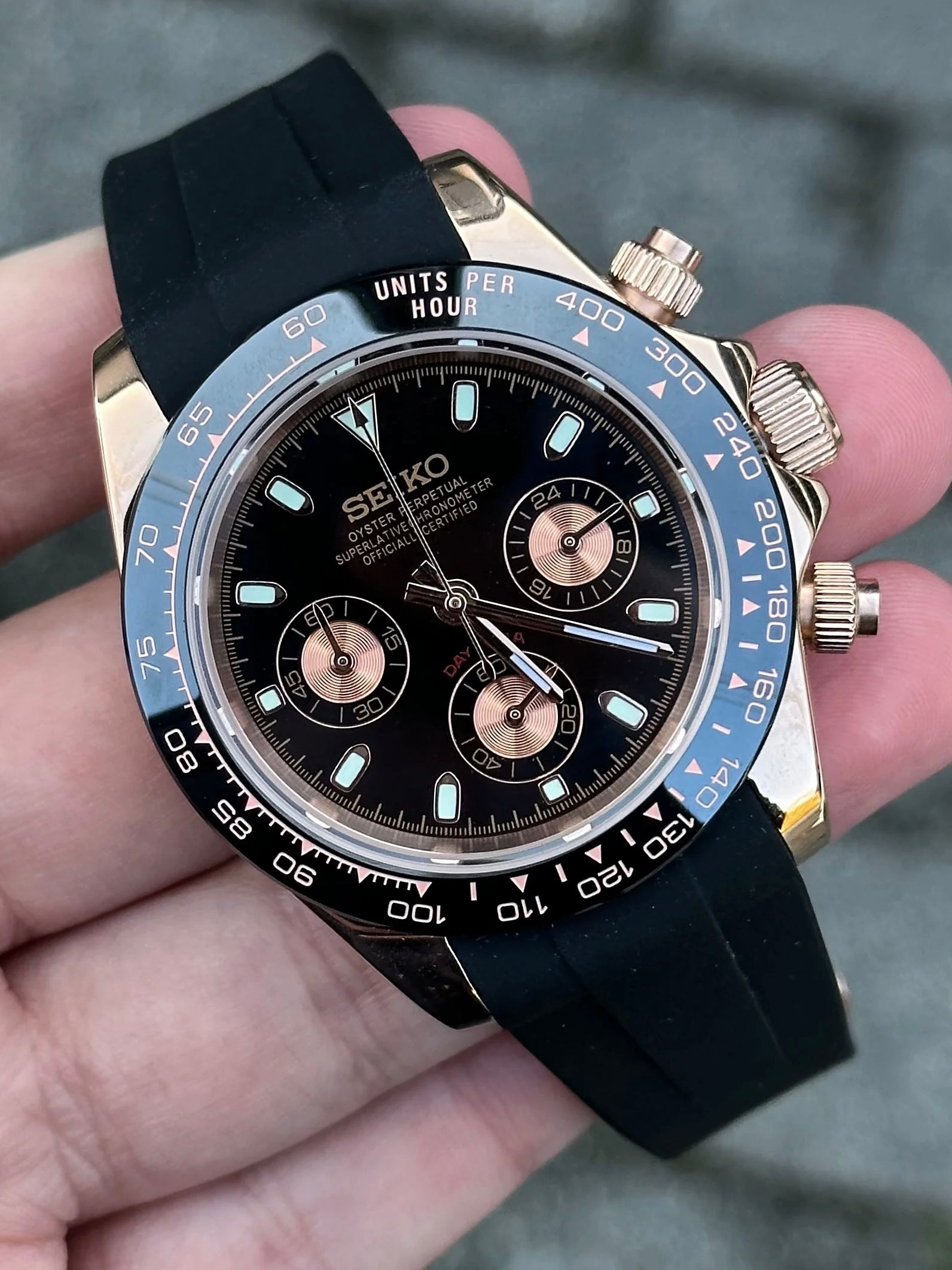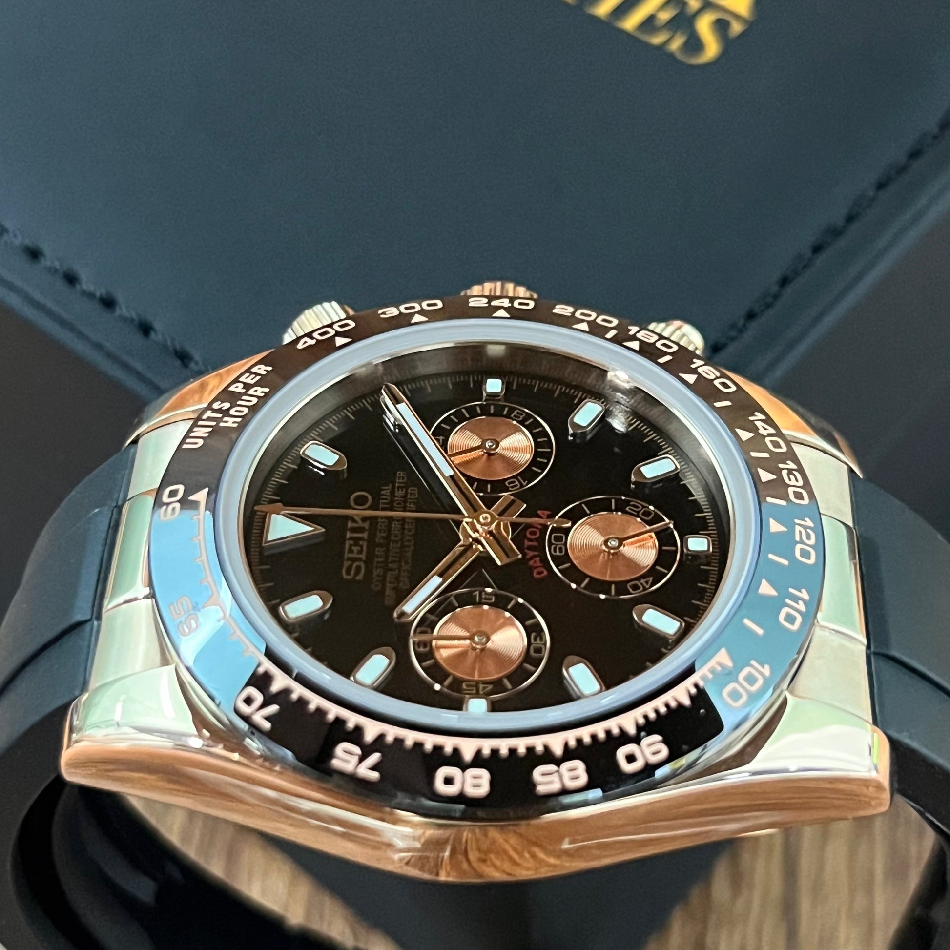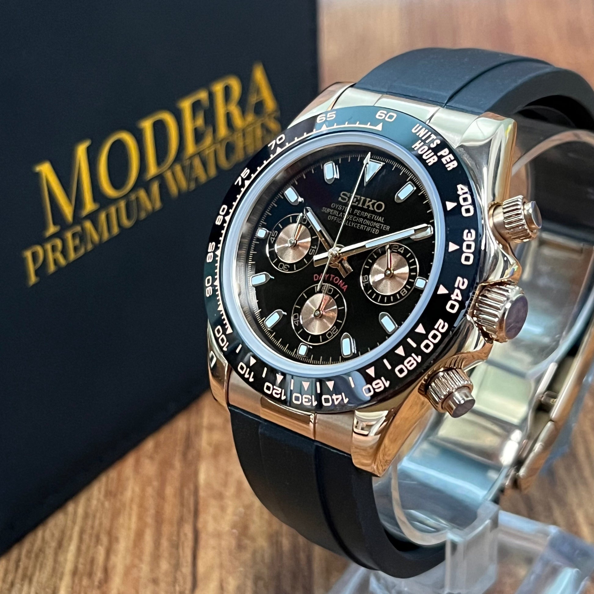Inspired by the iconic Daytona design, and featuring the prestigious Seiko VK63 hybrid movement, we present the Seiko Mod Daytona. A 40 mm high-end quality watch combining the perfect alliance between excellence and accessibility.